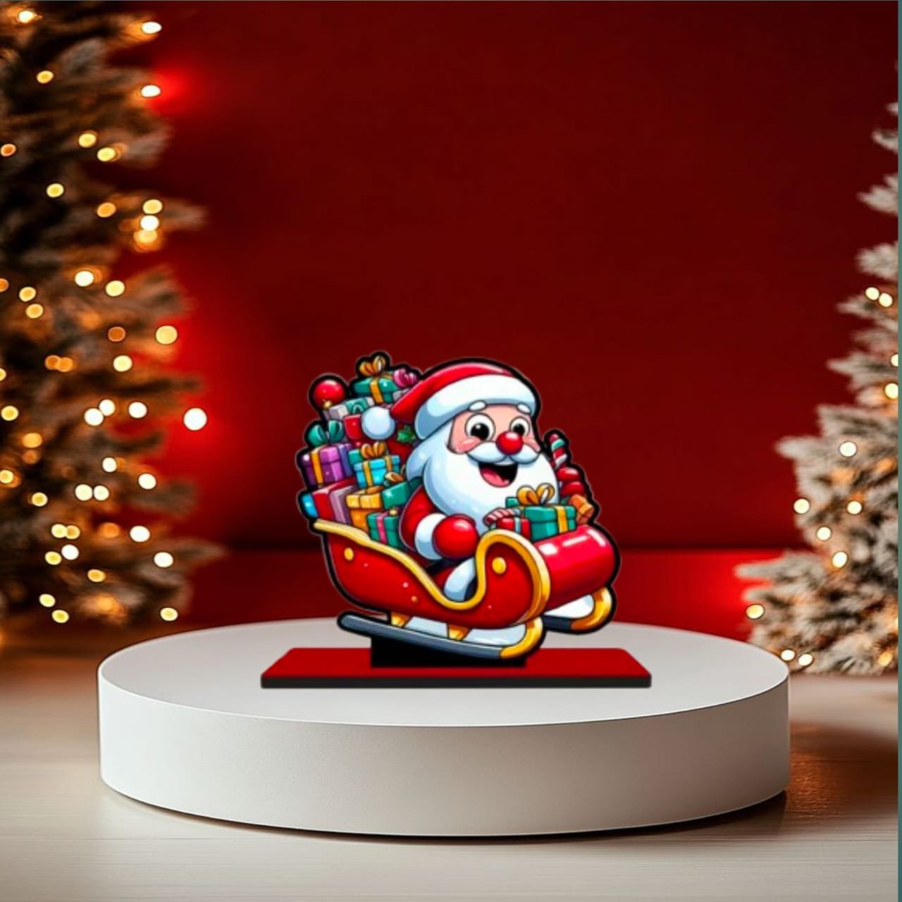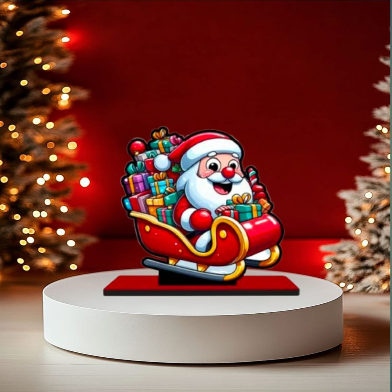 • Material/Style: Cartoon Santa Decor, Colorful Sleigh Showpiece, Tabletop Christmas Accent.