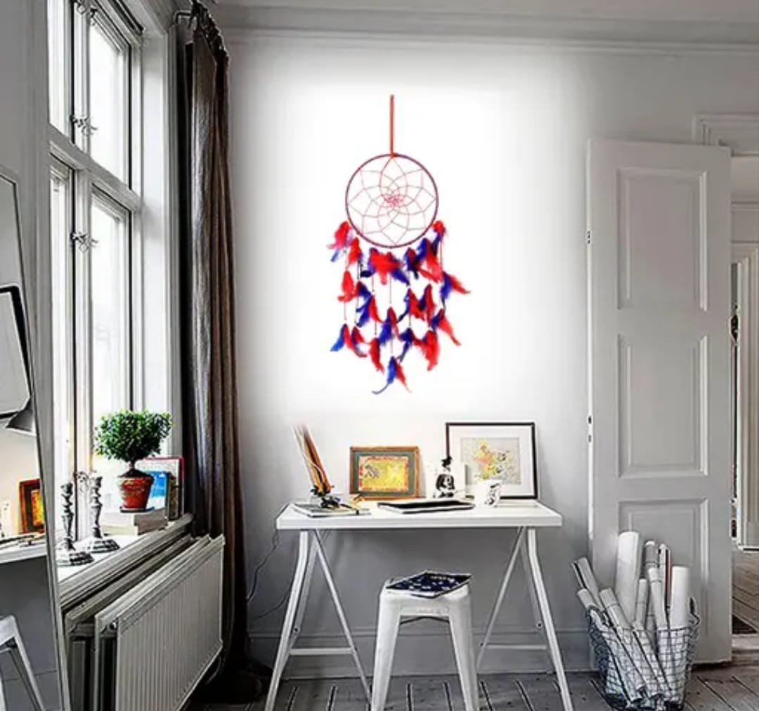 Transform your living space into a sanctuary of peace and artistic beauty with our Handmade Blue and Red Dream Catcher.