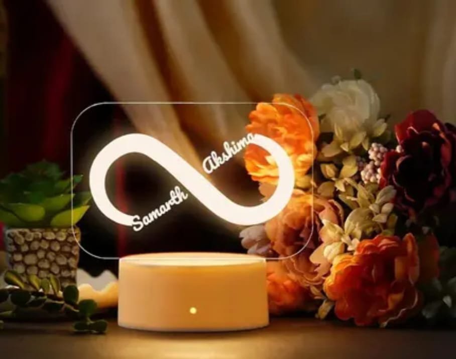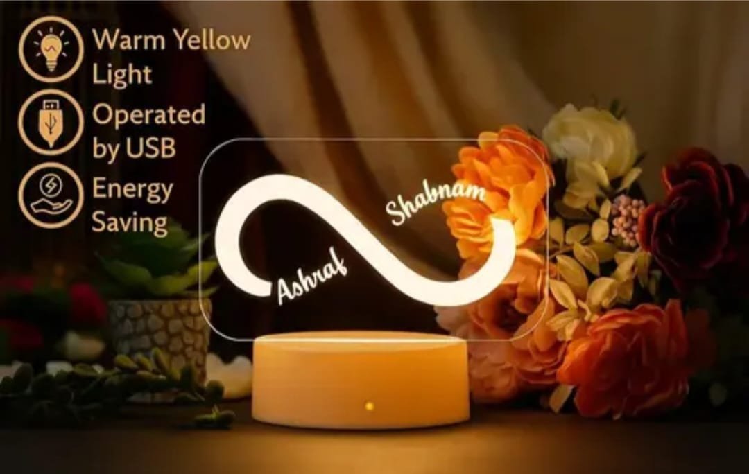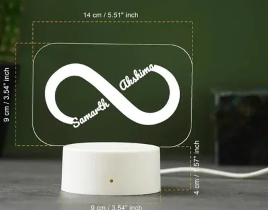 The design features a classic infinity loop, customized with two names of your choice. When lit, the transparent acrylic panel transforms into a glowing 3D illusion that adds a magical touch to any room. Unlike standard lamps, this Personalized Infinity 3D Lamp Gift provides a soft, warm yellow light that creates a cozy and romantic atmosphere, making it an excellent bedside night light.